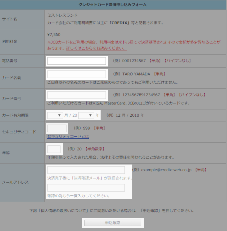 登録できます。必要事項を入力した後に「申込確認」をクリックして進んでください。